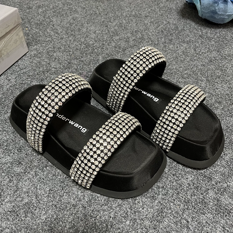 شبشب أسود كاجوال بحزام من حجر الراين ذو نعل سميك