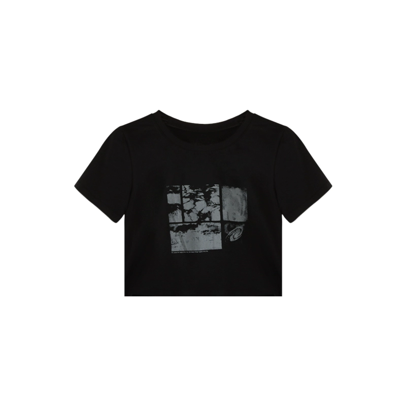 تيشيرت بأكمام قصيرة وقصة ضيقة باللون الأسود من ريترو