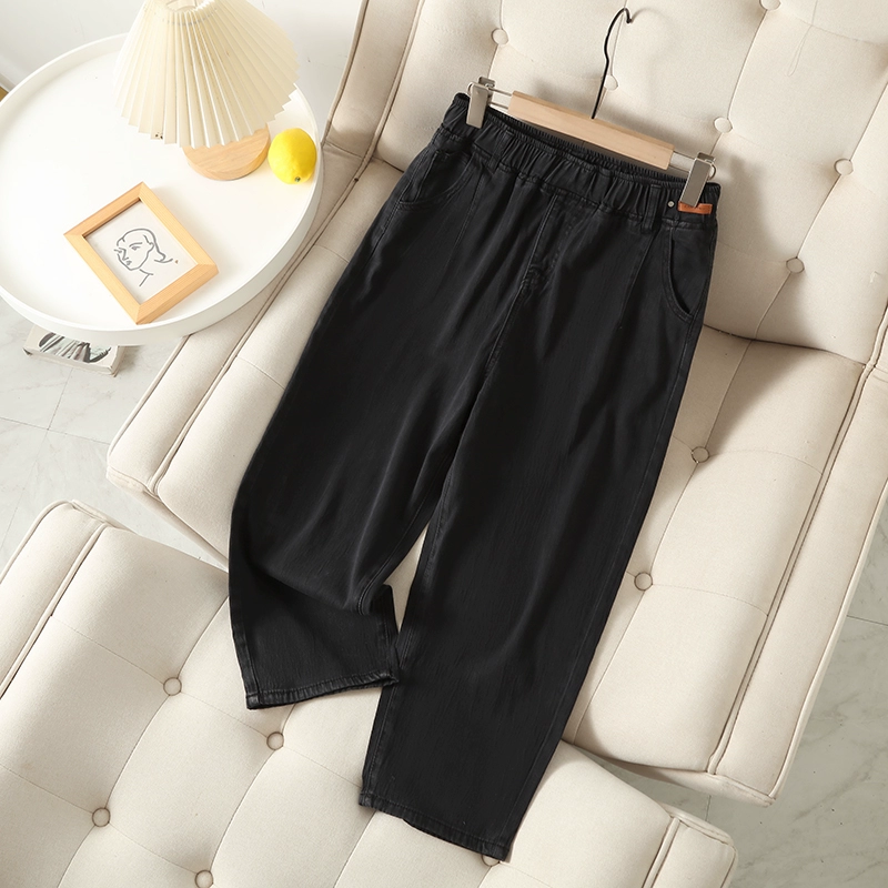 جينز مستقيم أسود عالي الخصر للنساء لربيع وخريف 2024 فضفاض للتخسيس سروال سجائر فضفاض تسع نقاط للصيف