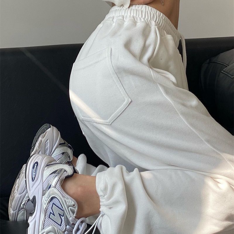 2024 الكورية نمط جديد السراويل الرياضية البيضاء المرأة أربعة مواسم فضفاضة واسعة الساق Ins العصرية سليم صالح سترة غير رسمية السراويل