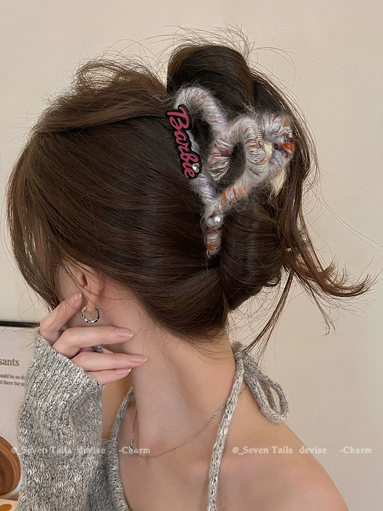 إشارة الحب ~ مشبك شعر من الصوف للنساء 2024 نمط جديد للخريف والشتاء مشبك حب بسيط مشبك قرش كبير للجزء الخلفي من الرأس