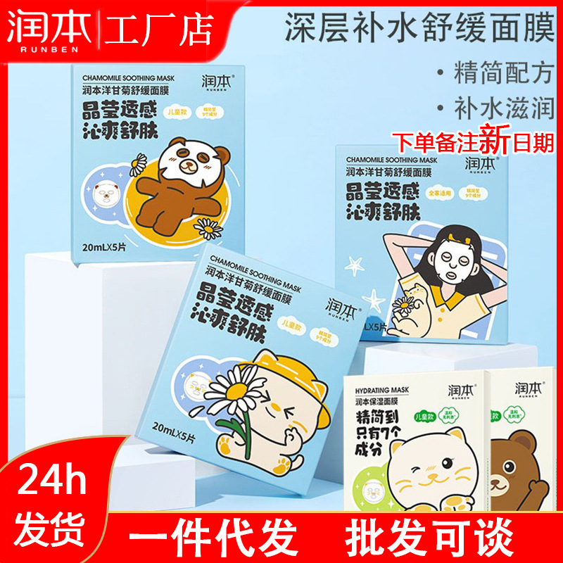 قناع الوجه للأطفال من RunBen للبيع بالجملة للفتيات والأولاد والبنات للعناية بالبشرة وترطيب قناع الوجه اللطيف