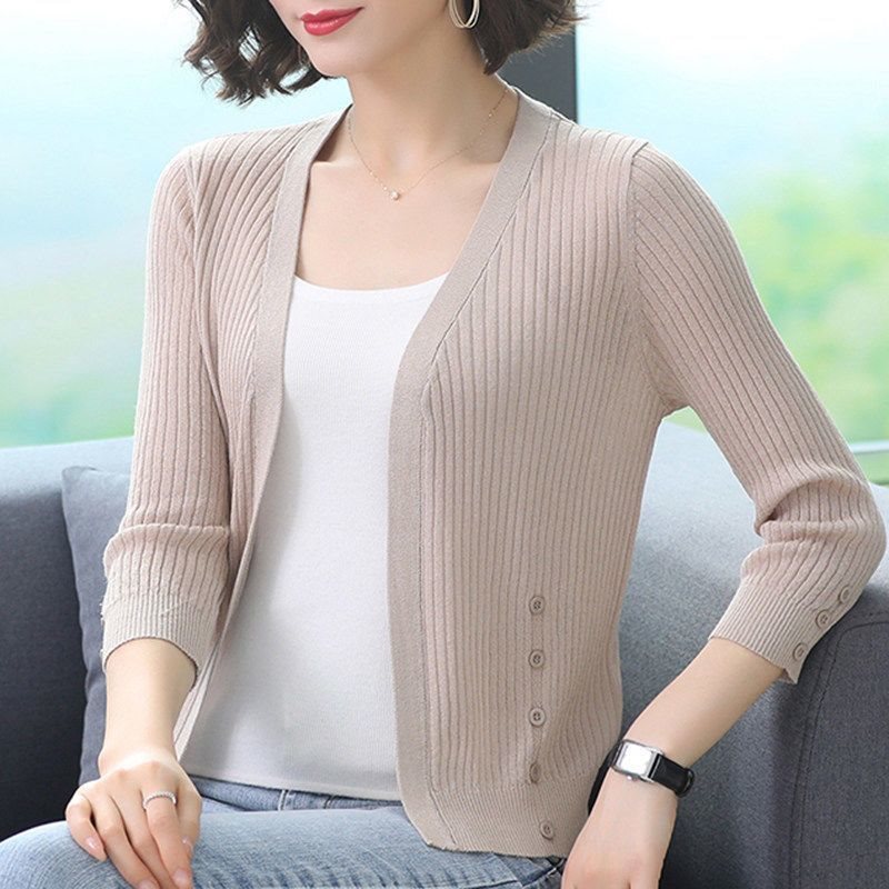 [التوصيل خلال 48 ساعة] سترة محبوكة من الحرير الجليدي 2021 معطف ربيعي قصير فضفاض للنساء