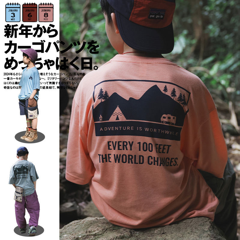 27 أطفال ماركة ملابس الأطفال الكورية بالجملة الأولاد 2024 صيف جديد للأطفال تي شيرتات قصيرة الاكمام جيل من الشعر