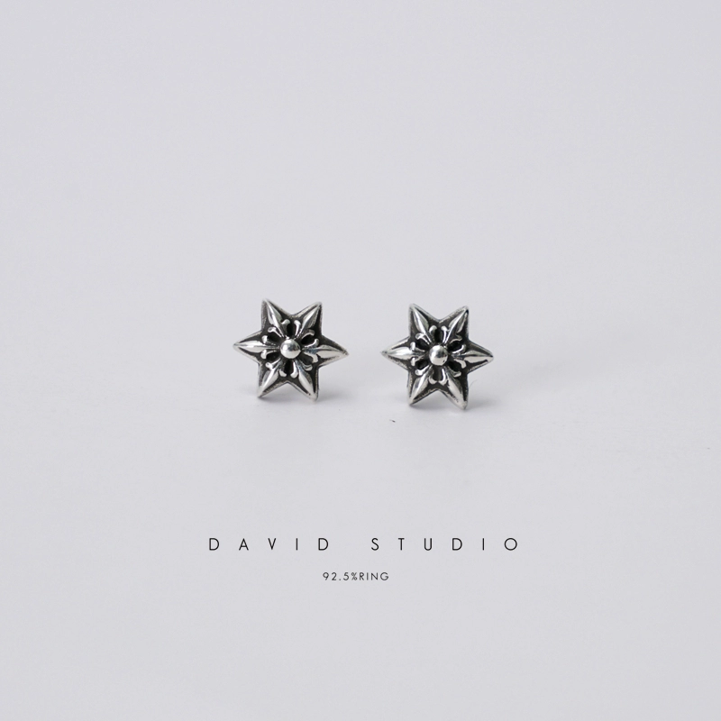 أقراط كلاسيكية صغيرة من الفضة الإسترليني ذات نجمة سداسية مدببة للرجال والنساء