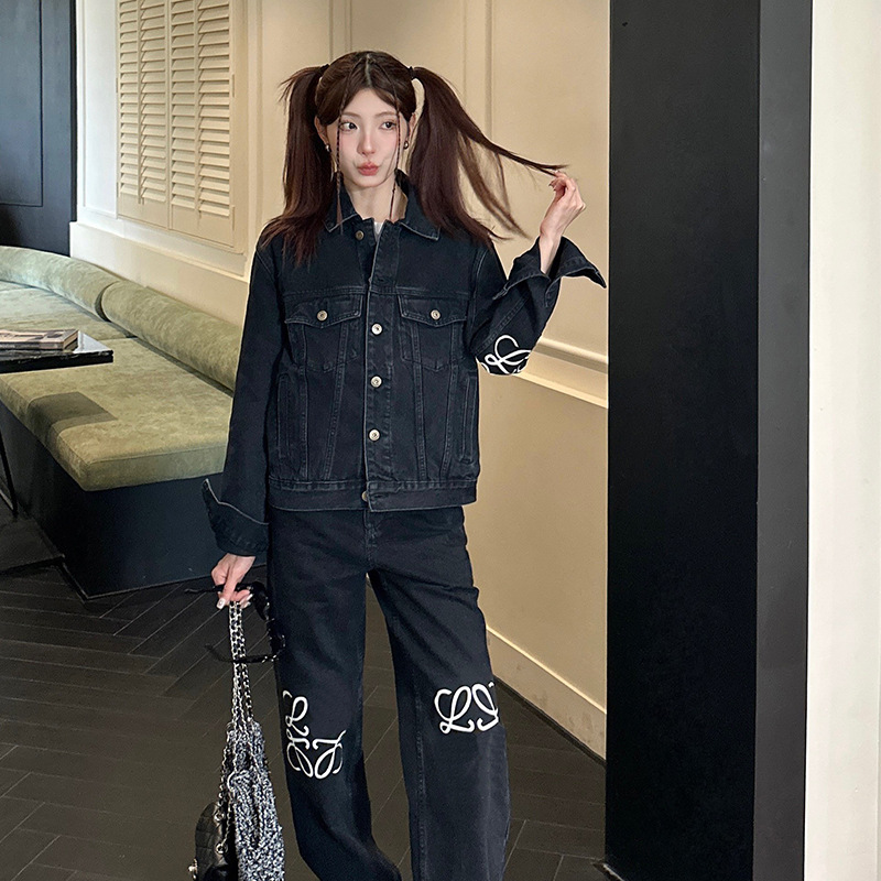 Loe * Luo yi للخريف والشتاء رقعة مجوفة جديدة مطرزة بشعار الجوكر للرجال والنساء مع معطف/سترة من الدنيم