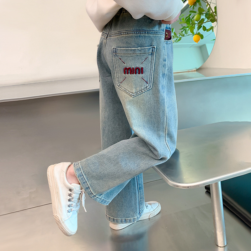 ملابس الأطفال جينز الأطفال للربيع والخريف سراويل طويلة غير رسمية للفتيات واسعة الساق فضفاضة للأولاد مستقيمة متوسطة وكبيرة للأطفال