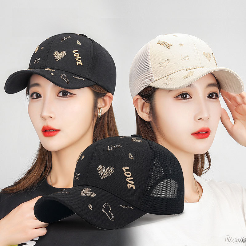 قبعة بيسبول عالية الجودة المرأة اعتصامات وجه صغير قمة صلبة ثلاثية الأبعاد ثلاثي الأبعاد خط الذهب الحب الموضة الكورية نمط قبعة عصرية
