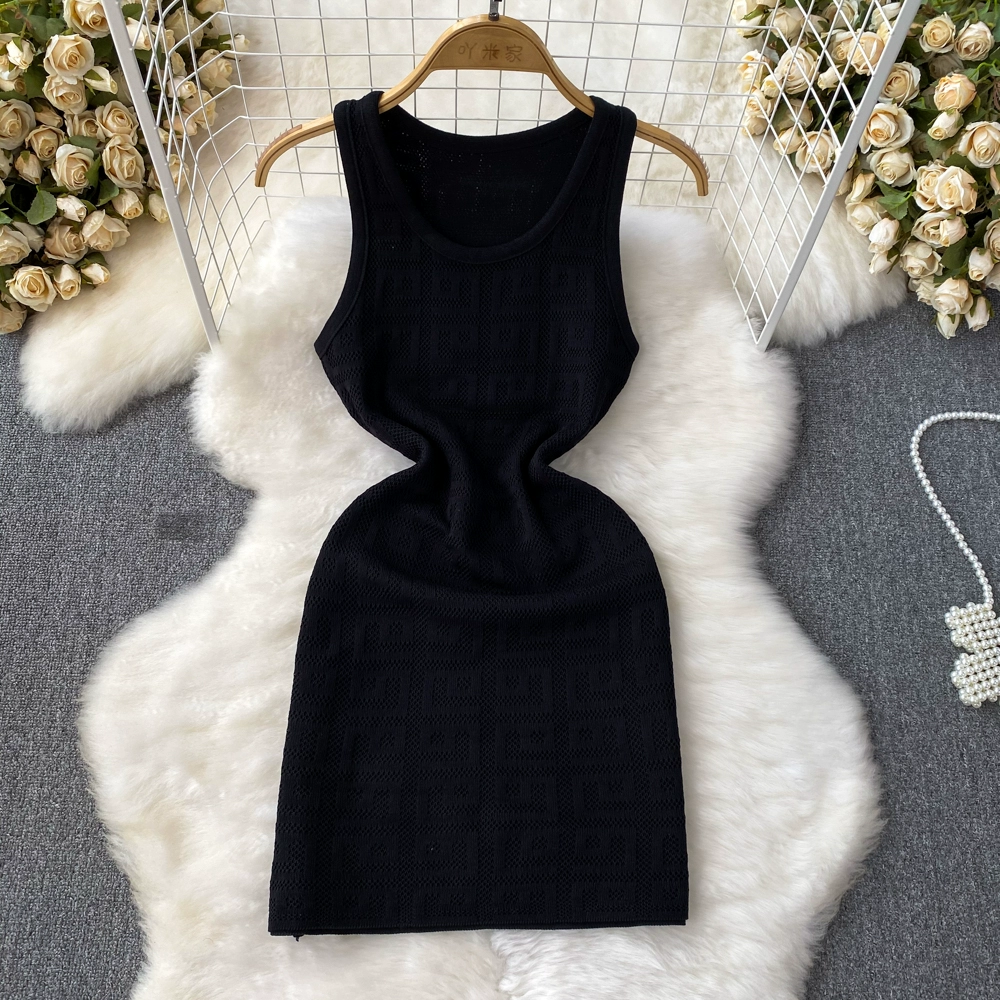 فستان صيفي قصير من قماش الجاكار على الطراز الكوري برقبة دائرية