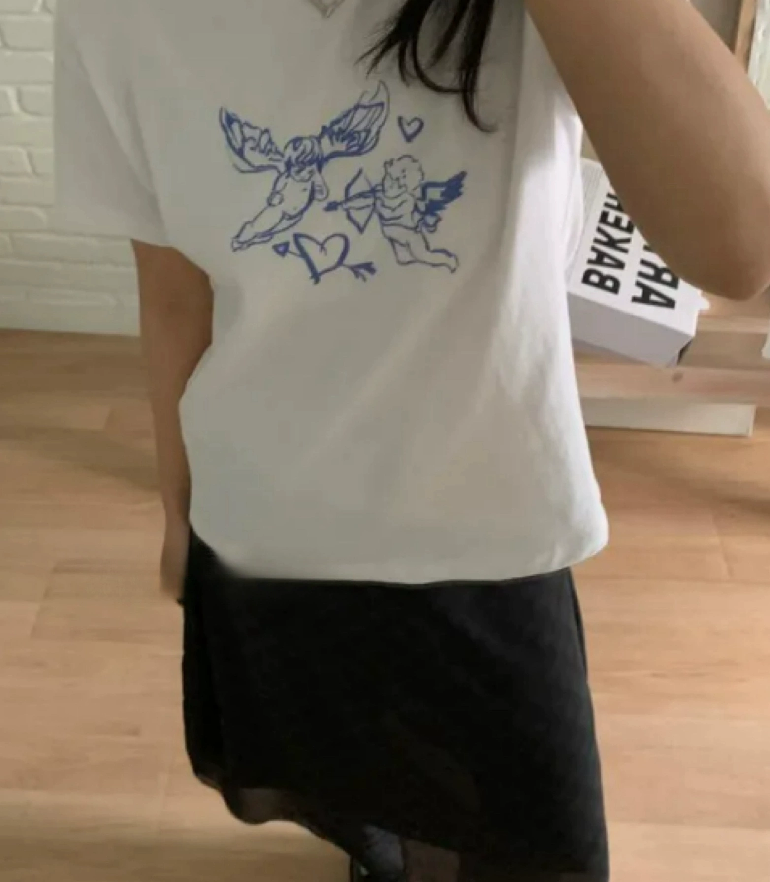 أحب النسخة الكورية بسيطة كيوبيد تي شيرت قصير الأكمام