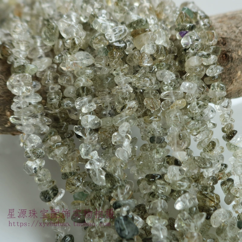 حصى الكريستال الطبيعي سلسلة طويلة شبه نهائية كريستال شعر أخضر مع ثقوب ومواد سوار من الحصى إكسسوارات مجوهرات ذاتية الصنع