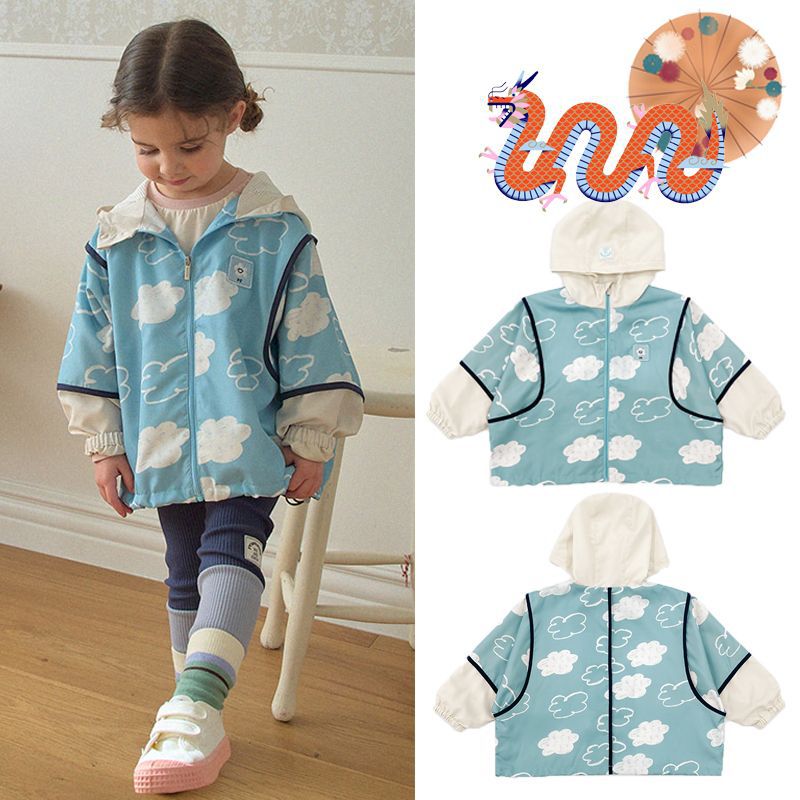 متوفر في المخزون 2024 قميص أطفال على الطراز الكوري ps جديد ربيعي للأطفال مطبوع عليه رسوم كارتونية للرجال والنساء معطف بأكمام متباينة الألوان