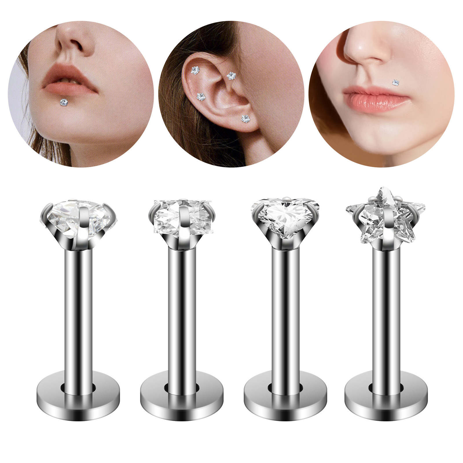 التجارة الخارجية الأوروبية والأمريكية أمازون ويش الفولاذ المقاوم للصدأ الزركون الشفاه مسمار الأنف مسمار الخيط الداخلي الأذن مسمار ثقب المجوهرات المصنع
