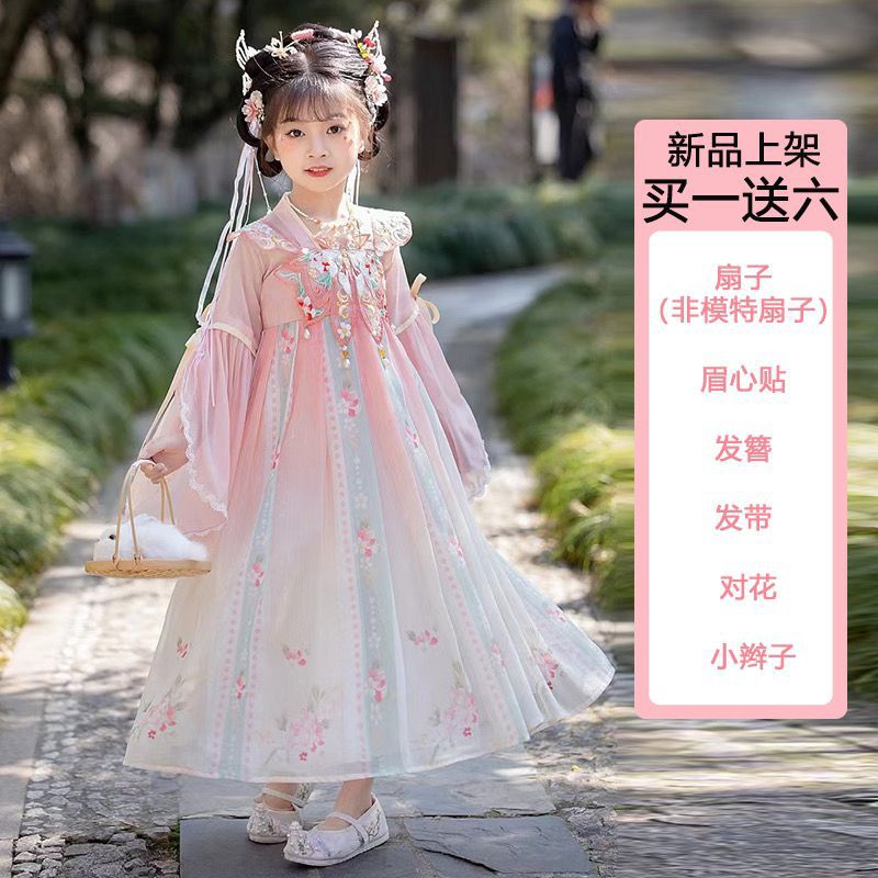 فستان Hanfu للفتيات لصيف 2024 فستان على الطراز القديم الجديد للفتيات الصغيرات بدلة تانغ للأطفال فستان قديم خرافي للغاية للربيع والخريف