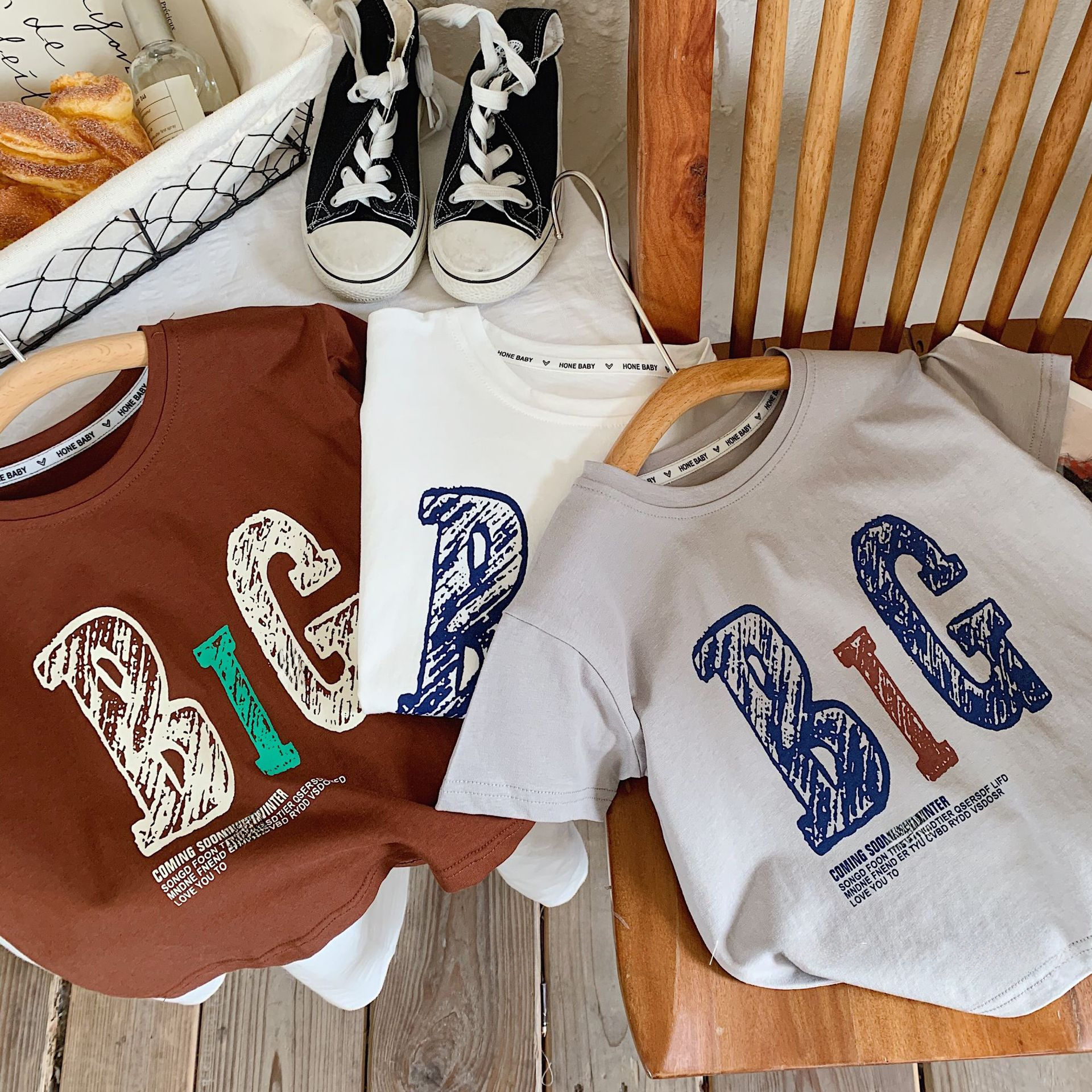 تي شيرت أطفال 2023 Bang Cheng صيفي للرجال صغير ومتوسط الحجم حروف على الطراز الكوري للأطفال بأكمام قصيرة كاجوال قصير T F0186