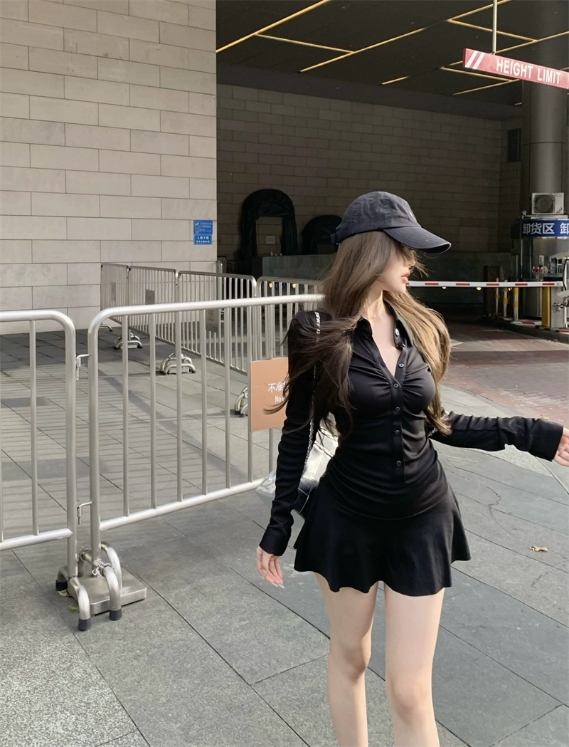 23 عامًا من التجارة الخارجية الأوروبية والأمريكية، أزياء حلوة للشارع، صيف جديد، بياقة واقفة، لون سادة، مكشوف الخصر، فستان طويل 23003
