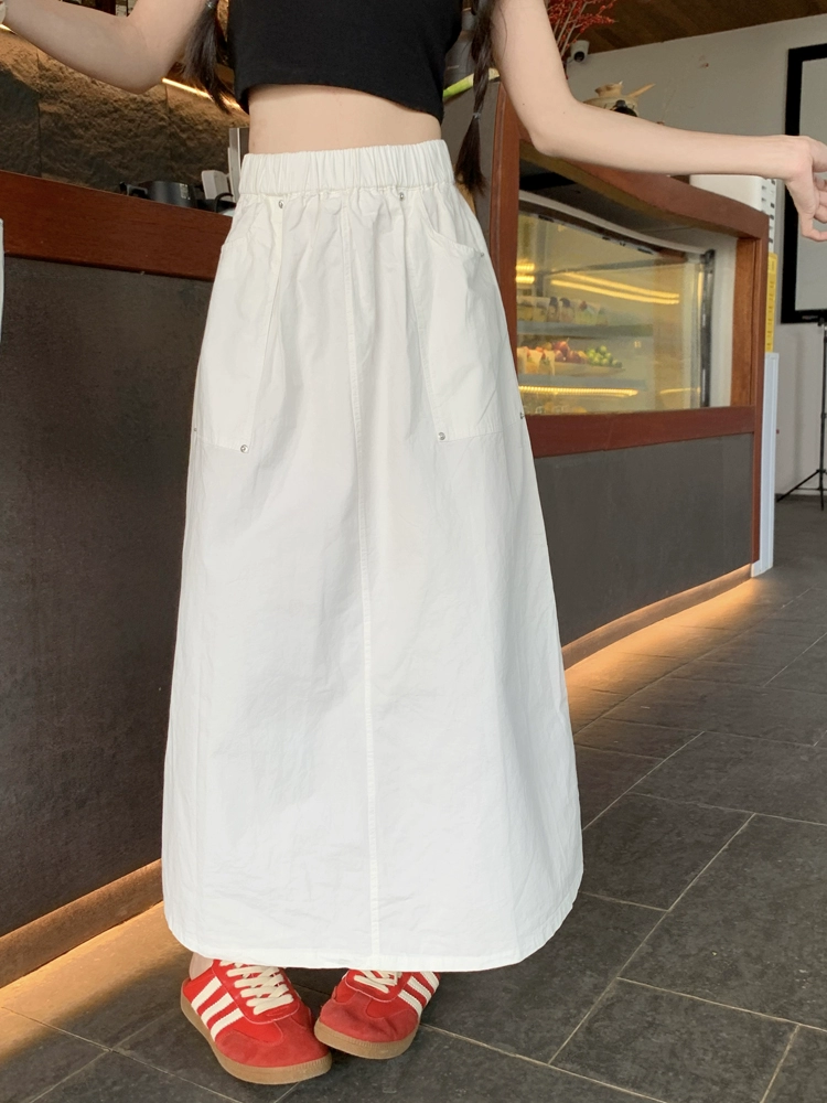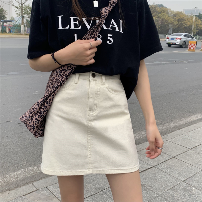 الأبيض ألف خط تنورة المرأة الصيف الجديدة عالية الخصر التخسيس الأدوات خمر البيج الصغيرة السوداء تنورة الدنيم