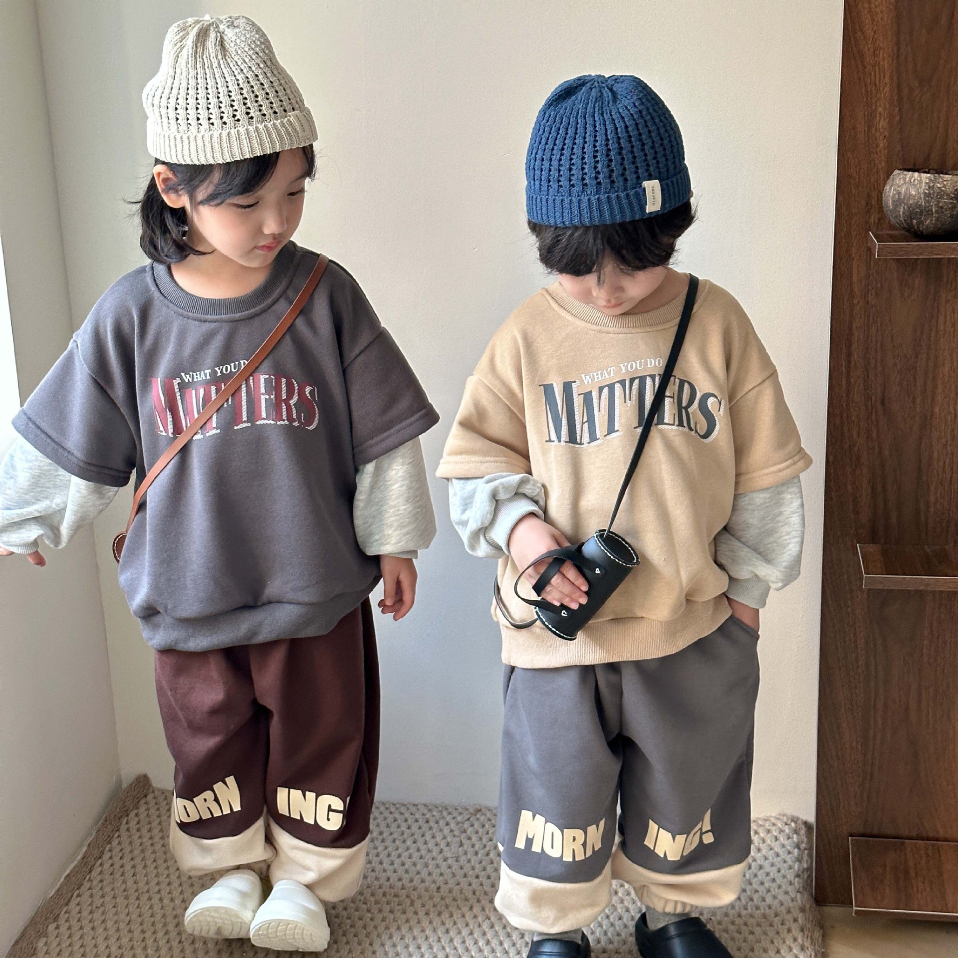 سترة الأطفال الربيع والخريف وهمية من قطعتين للأولاد والبنات كنزة صوفية ربيعية 24 ربيع جديد فضفاض بحروف علوية