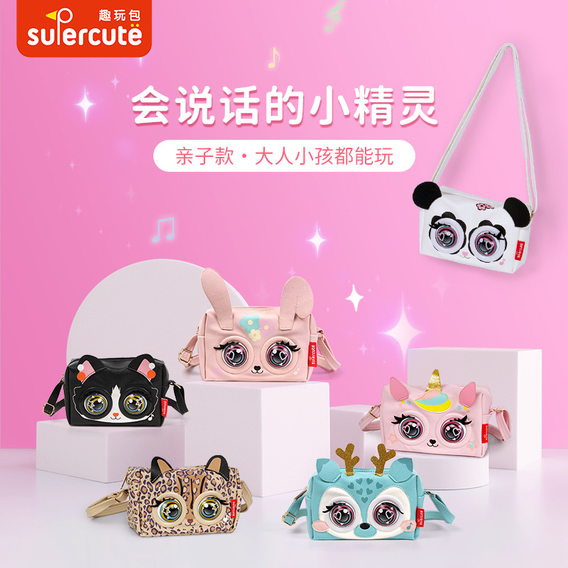 محفظة أطفال جديدة لطيفة على شكل صوت وميض تفاعلي، حقيبة فتاة قزم، حقيبة ساعي هدية لعبة مزخرفة