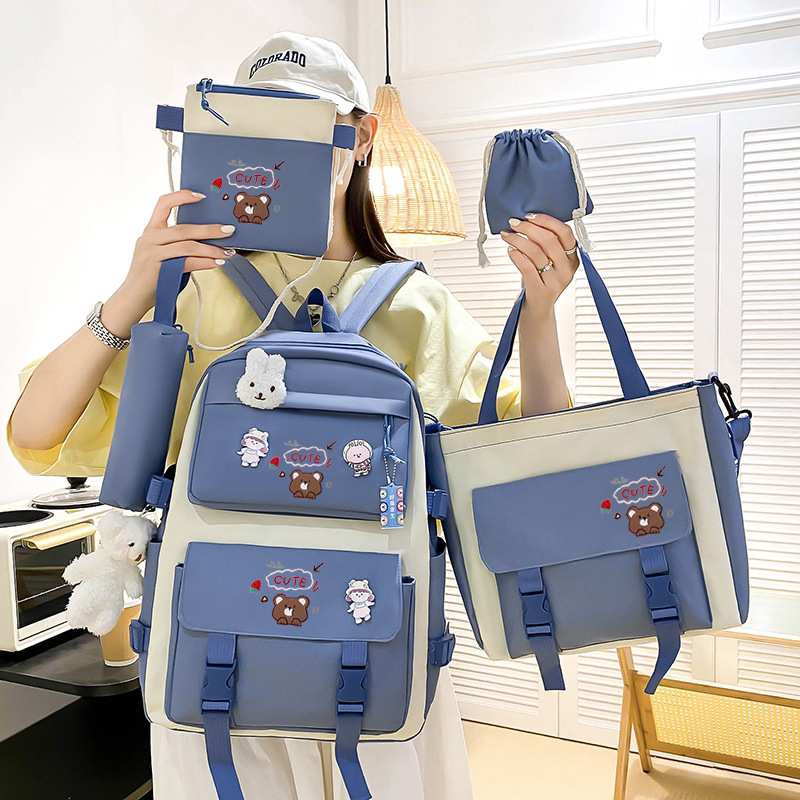 حقيبة ظهر بسيطة مكونة من خمس قطع، حقيبة ظهر كاجوال جديدة ذات سعة كبيرة، حقيبة مدرسية لطيفة لطلاب المدارس الابتدائية