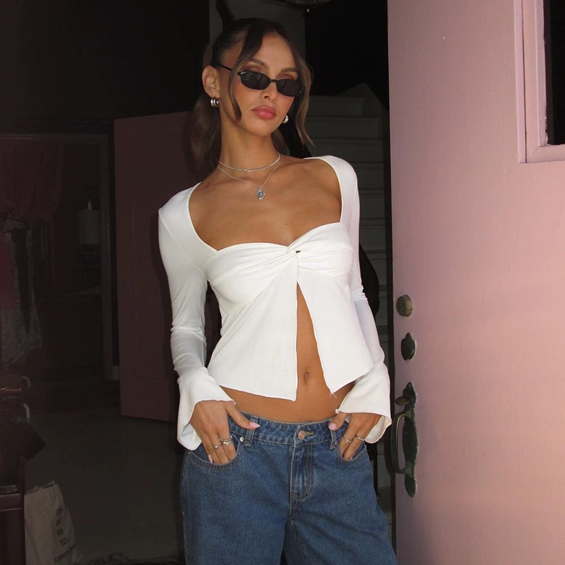 تي شيرت kumikumi بأكمام طائرة صغيرة من الجاكار بقصة ضيقة