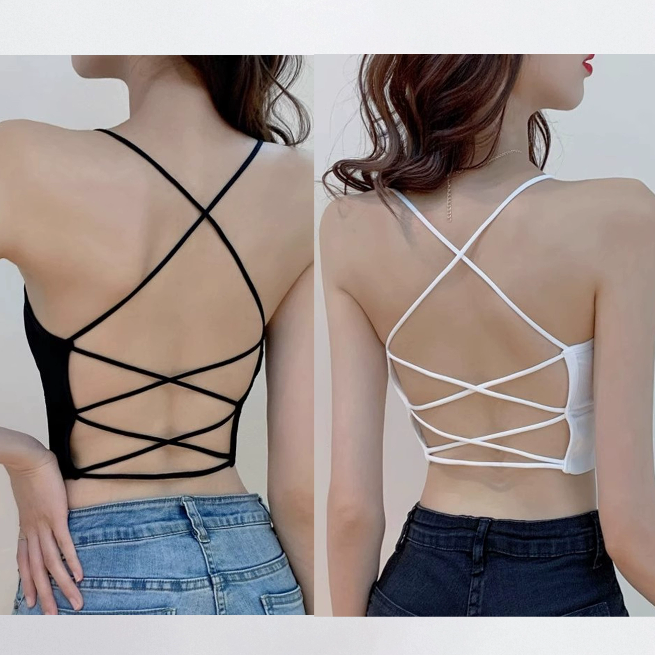 فتاة مثيرة ذات ظهر جميل، ملابس خارجية صيفية مثيرة للنساء باللون الأسود، حزام حمالة صغير