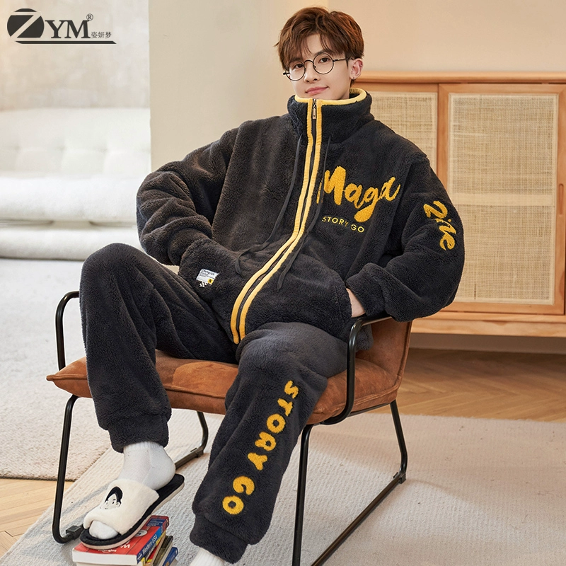 البيجامات للرجال الشتاء سميكة المخملية المرجانية المخملية الدافئة السوستة ملابس المنزل الخريف والفانيلا الشتاء يمكن ارتداؤها في الخارج