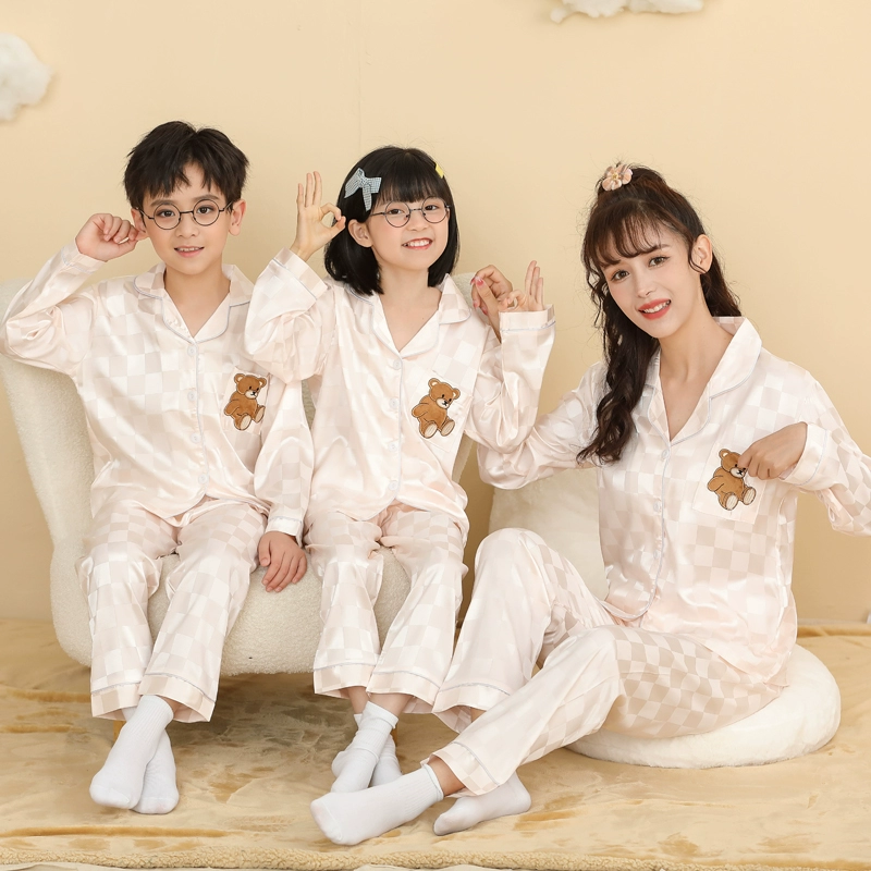 بيجامة صيفية من الحرير الجليدي متوسطة وكبيرة للأولاد من الوالدين والطفل