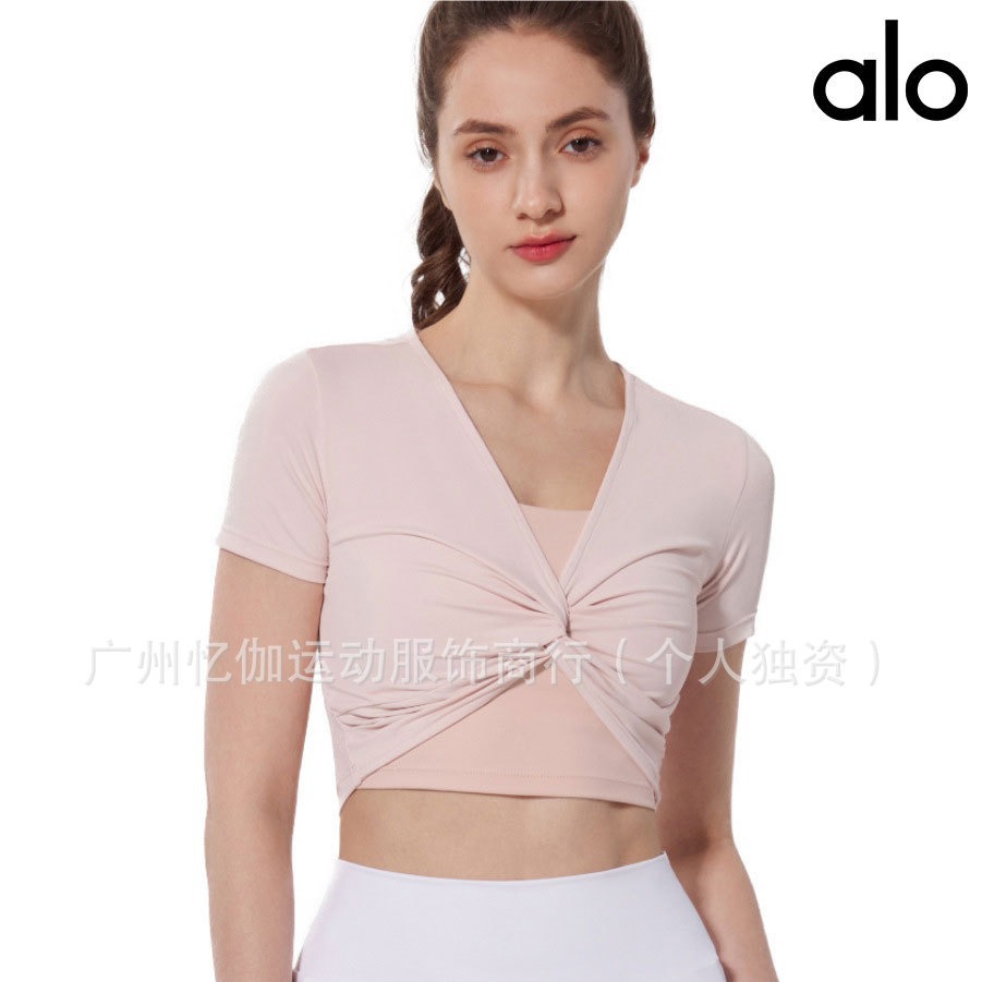 ألو يوجا الموقع الرسمي جديد بيلاتيس بدلة يوجا رقص الباليه اللياقة البدنية تي شيرت امتصاص الرطوبة التجفيف السريع قميص قصير الأكمام