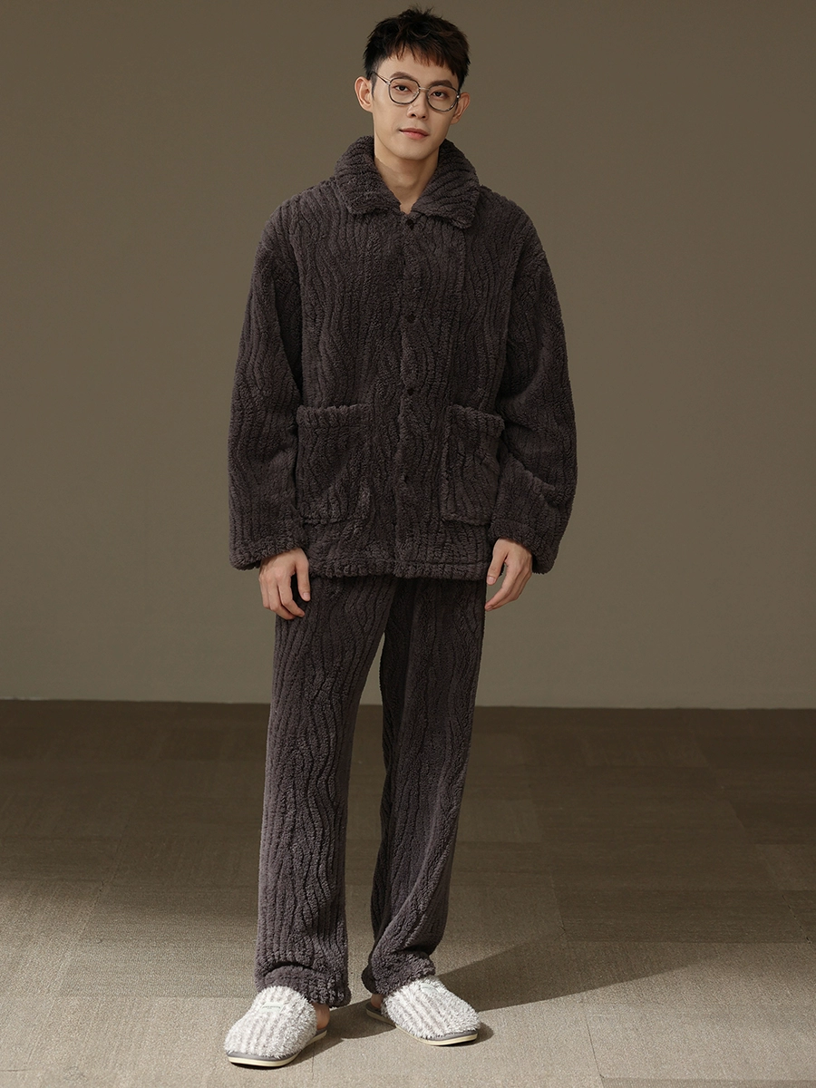 “سميكة ومخملية” تحافظ على دفء البيجامات الشتوية للرجال بنكهات مخملية مرجانية في الخريف والشتاء يمكن ارتداء ملابس منزلية سترة