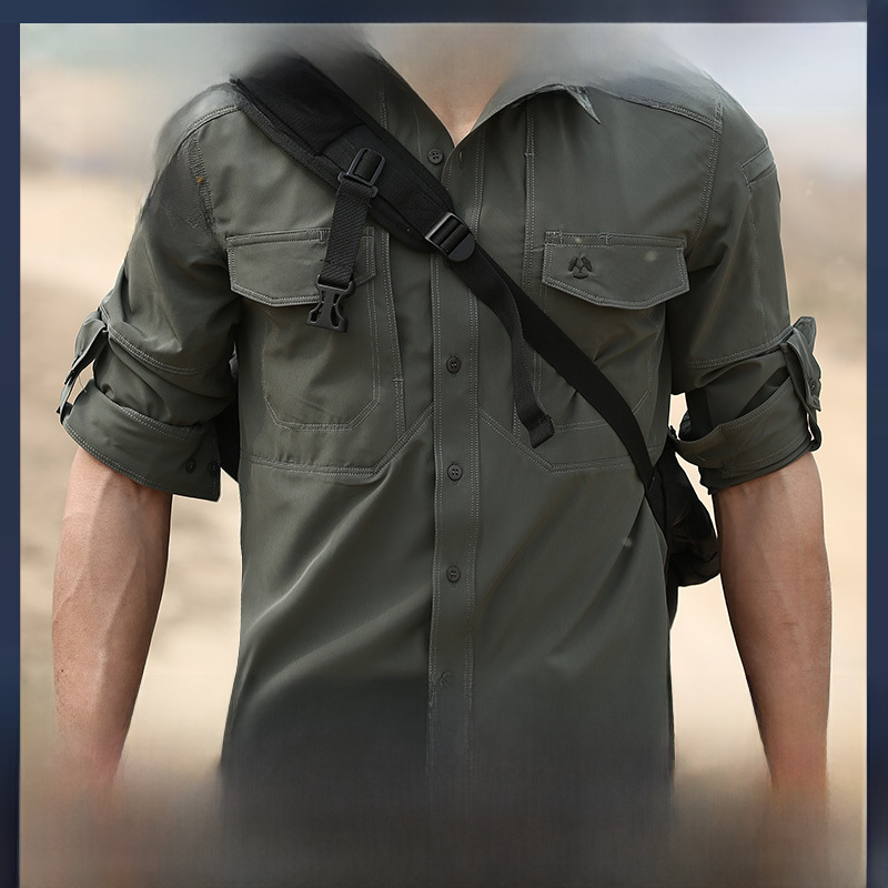 قميص تكتيكي بأكمام طويلة للخريف والشتاء من Ang Ken للرجال، قميص تكتيكي رفيع للغاية قابل للتنفس ومتعدد الجيوب سريع الجفاف وطية صدر السترة سترة تسلق الجبال