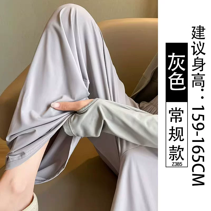 سروال رفيع من الحرير الجليدي عالي الخصر وسريع الجفاف وواسع الساق