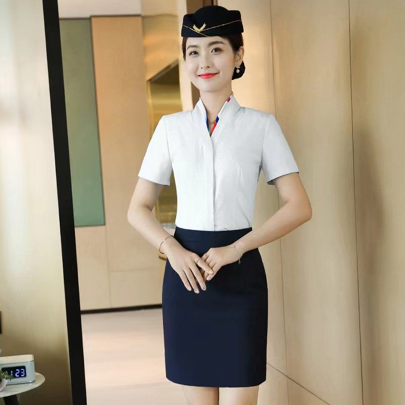 مضيفات الطيران مقابلة موحدة قميص أنثى مضيفة المهنية فستان البدلة قميص أبيض ملابس العمل فحص الملابس الملابس طوق تنورة
