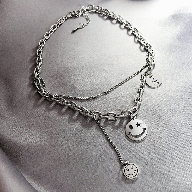 قلادة وجه مبتسم للسيدات بتصميم خاص على شكل سلسلة ترقوة أوروبية وأمريكية لكامل الجسم من الفولاذ على طراز الهيب هوب الداكن إكسسوارات مجوهرات بمزاج