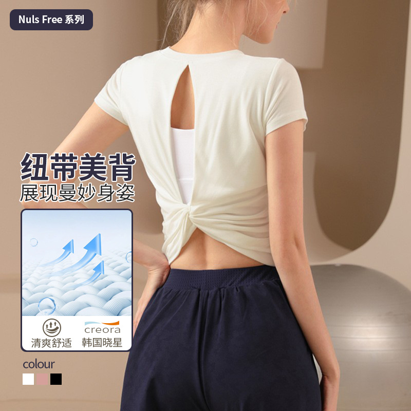تي شيرت نسائي رياضي بأكمام قصيرة مثير للسرة عبر الحدود تي شيرت مرن ضيق للتنحيف سريع الجفاف للياقة البدنية واليوجا وأكمام قصيرة رفيعة