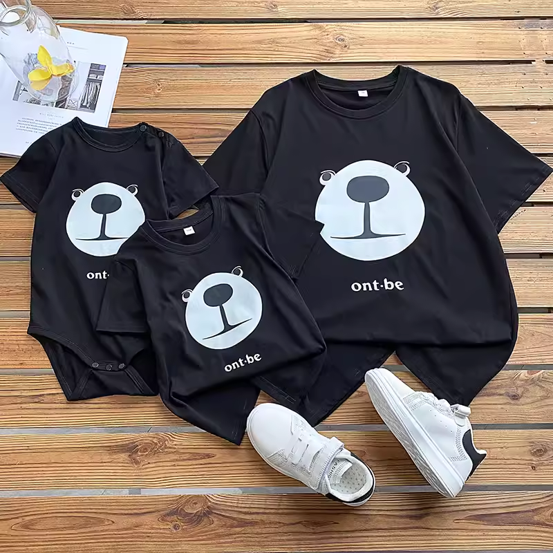 عائلة طفل مكونة من ثلاثة رسوم متحركة بأكمام قصيرة تي شيرت ملابس الوالدين والطفل