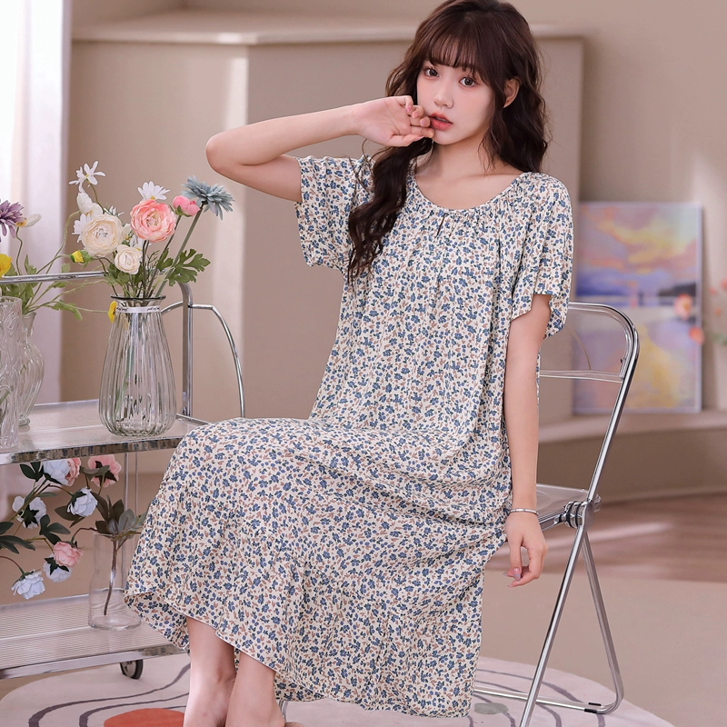 النسخة الكورية من القطن والمنحدرات مع القطن الطويل و Nightdress للسيدات القصيرة -زيادة البيجامات الصيف الملابس الاصطناعية المنزل