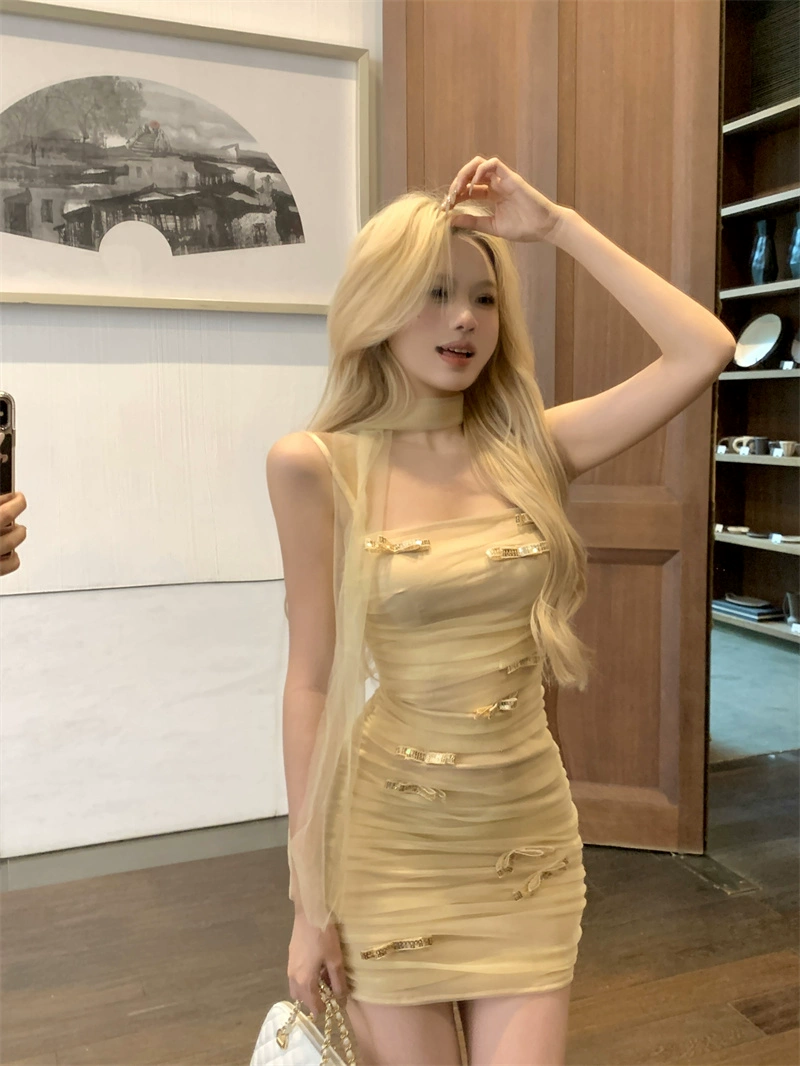تنورة شبكية صيفية مثيرة بحمالات الورك مع فيونكة