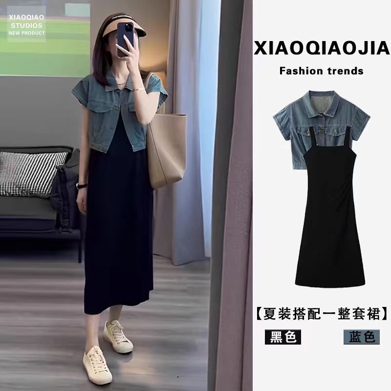 في المخزون قسم الشاي الصيفي يرتدي مجموعة من ملابس النساء الحوامل ذات العمر الصغير من قماش الدنيم مع حزام