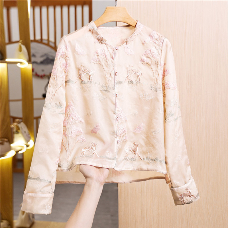 جديد النمط الصيني النمط الوطني زر حتى قميص المرأة فضفاضة 2024 الصيف رقيقة عادية كل مباراة طويلة الأكمام حماية الشمس سترة علوية
