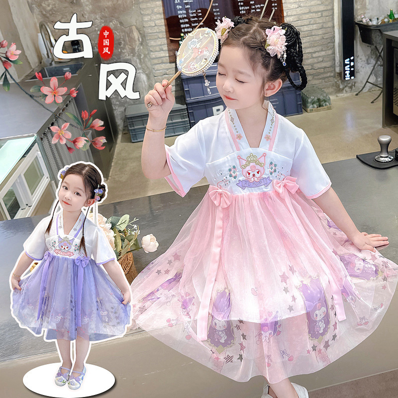 تنورة سفينة Kulomi Hanfu للفتيات لصيف 2024 نمط جديد على الطراز الغربي فستان الأميرة الجنية العتيق للفتيات الصغيرات