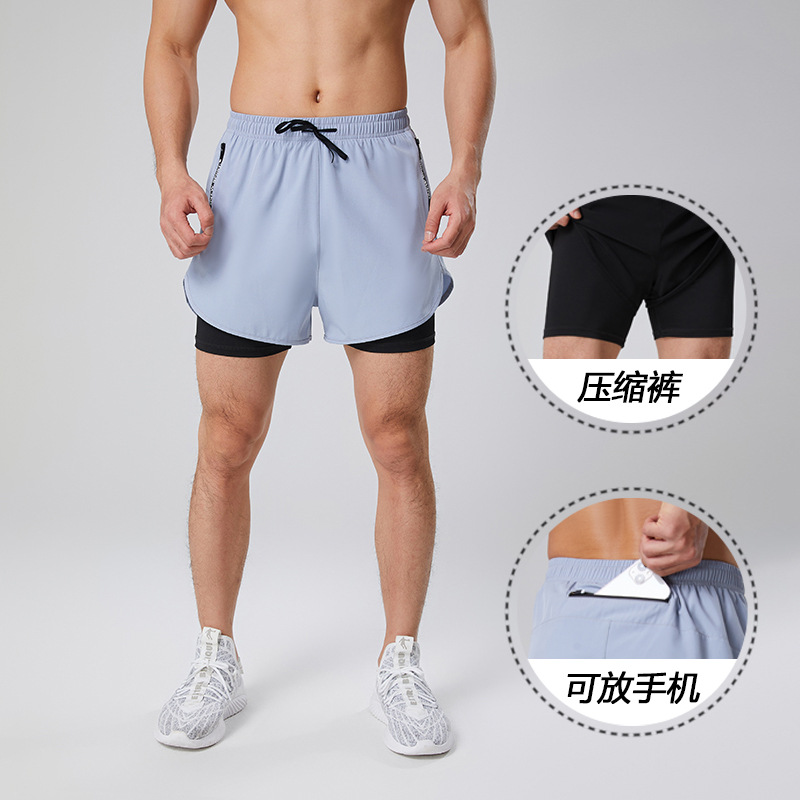 السراويل القصيرة عبر الحدود الرجال السراويل الرياضية الصيف تشغيل اللياقة البدنية التدريب السراويل الحرير الجليد تنفس السراويل وهمية قطعتين السراويل النسخة العامة