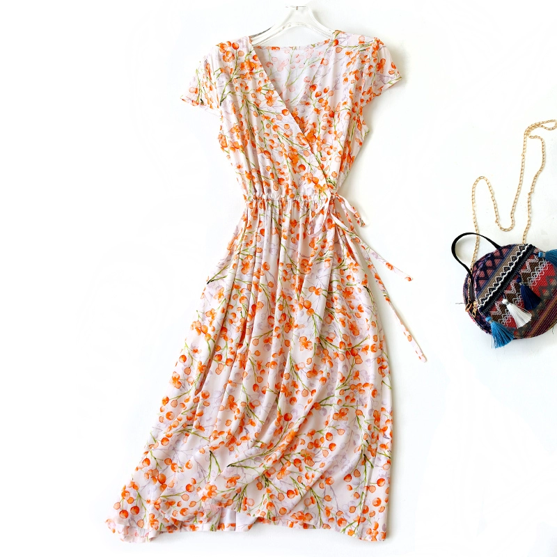 فستان حرير من القطن للنساء في صيف أزياء هان على غرار الحرير قصير الأكمام