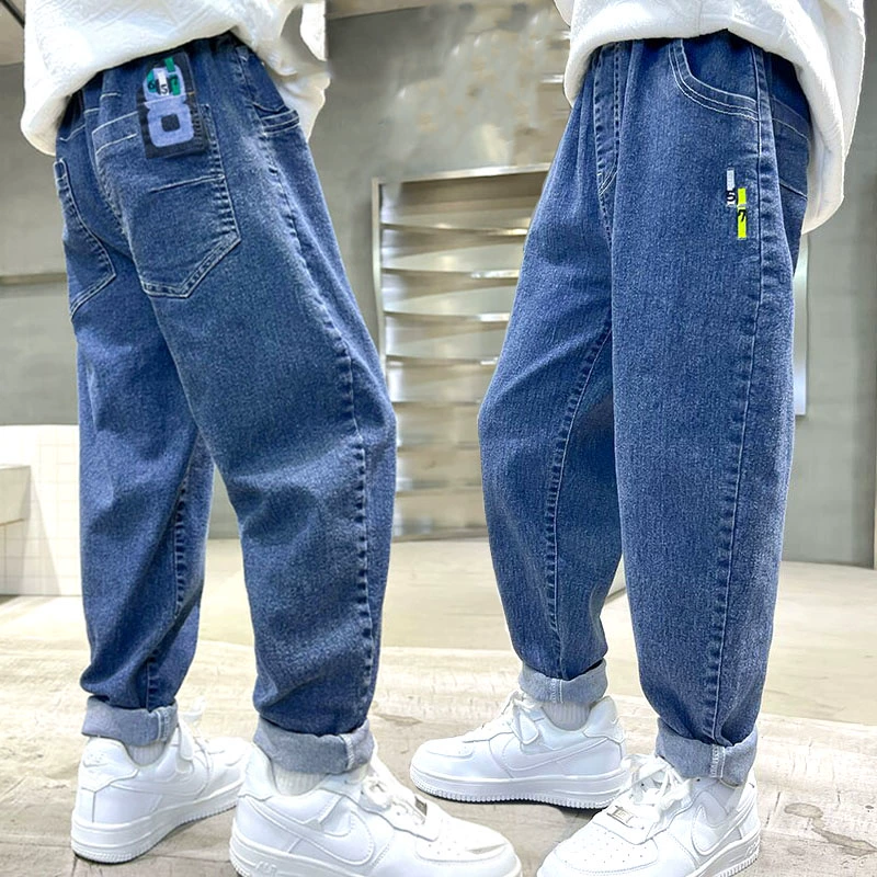 جينز دانتيل للفتيات للربيع والخريف سروال واسع من قماش الدنيم الشبكي الجديد على الطراز الغربي CM0017