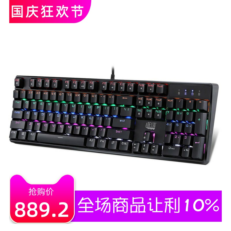 لوحة مفاتيح ميكانيكية Adesso/Edison AKB-640EB لوحة مفاتيح سلكية للألعاب ذات محور أزرق ومفاتيح تشغيل سريعة مدمجة