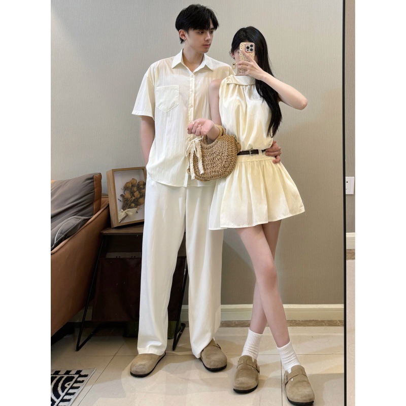 الفستان الفرنسي البسيط القطني القصير بأكمله