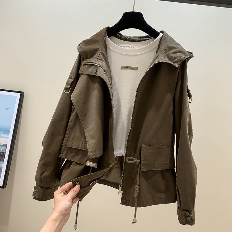 سترة واقية قصيرة صغيرة للنساء لربيع وخريف 2023 سترة فضفاضة بتصميم كوري جديد موضة معطف تنحيف الخصر