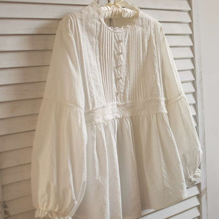 23 قميص دمية توتو قطني مطرز كوري قميص أبيض فضفاض بأكمام طويلة من الدانتيل الطازج للنساء