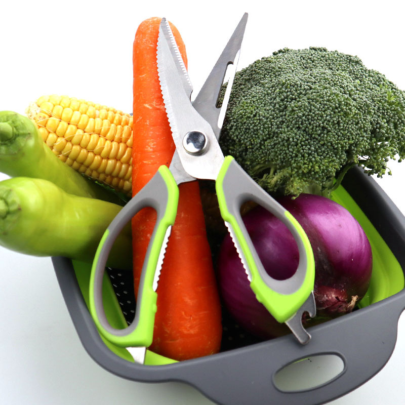 مقص مطبخ من الفولاذ المقاوم للصدأ، مقص عظم الدجاج القوي، قطع الثلاجة، مشبك ماو السمك المفتوح، مقص طعام سميك متعدد الأغراض من الجوز