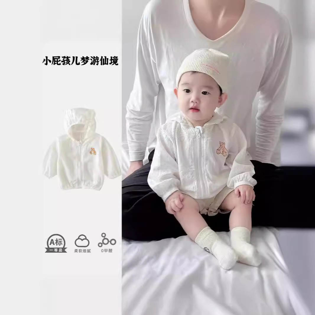 ملابس واقية من الشمس للأطفال ملابس صيفية رقيقة لجلد الدب للأطفال 2024 سترة قميص تكييف هواء للأطفال حديثي الولادة للصيف